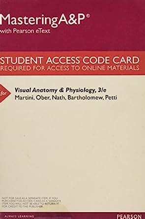 Read MasteringAandP with Pearson eText Valuepack Access Card for Visual Anatomy and Physiology Reader By Click Button. MasteringAandP with Pearson eText Valuepack Access Card for Visual Anatomy and Physiology it’s easy to recommend a new book category such as Novel, journal, comic, magazin, ect. You see it and you just know that the designer is also an author and understands the challenges involved with having a good book. You can easy klick for detailing book and you can read it online, even you can download it